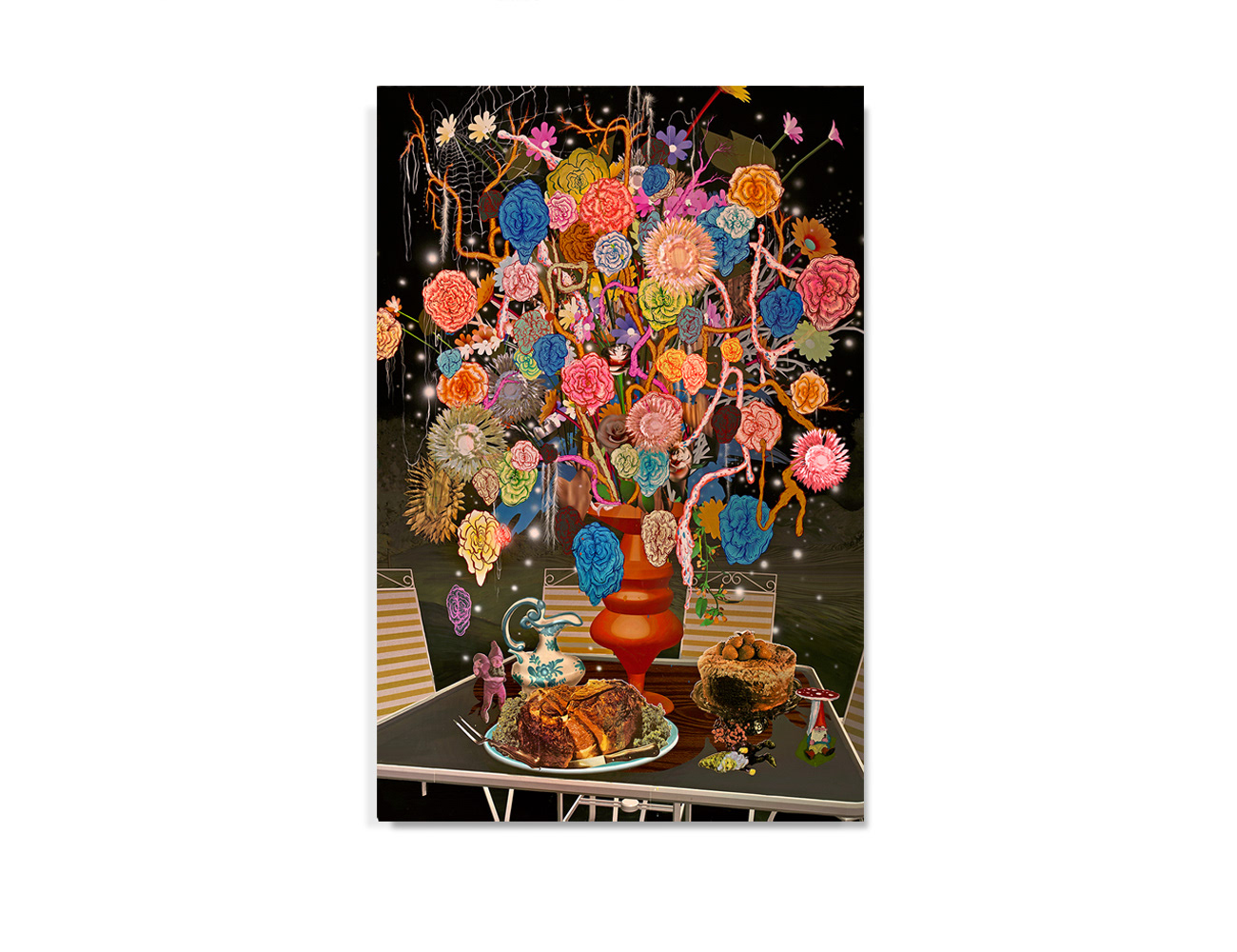 Bouquet with Beef and Friends, 72" x 48" x 1 3/4" inches, oil, acrylic, and 4C process silkscreen on panel, 2010