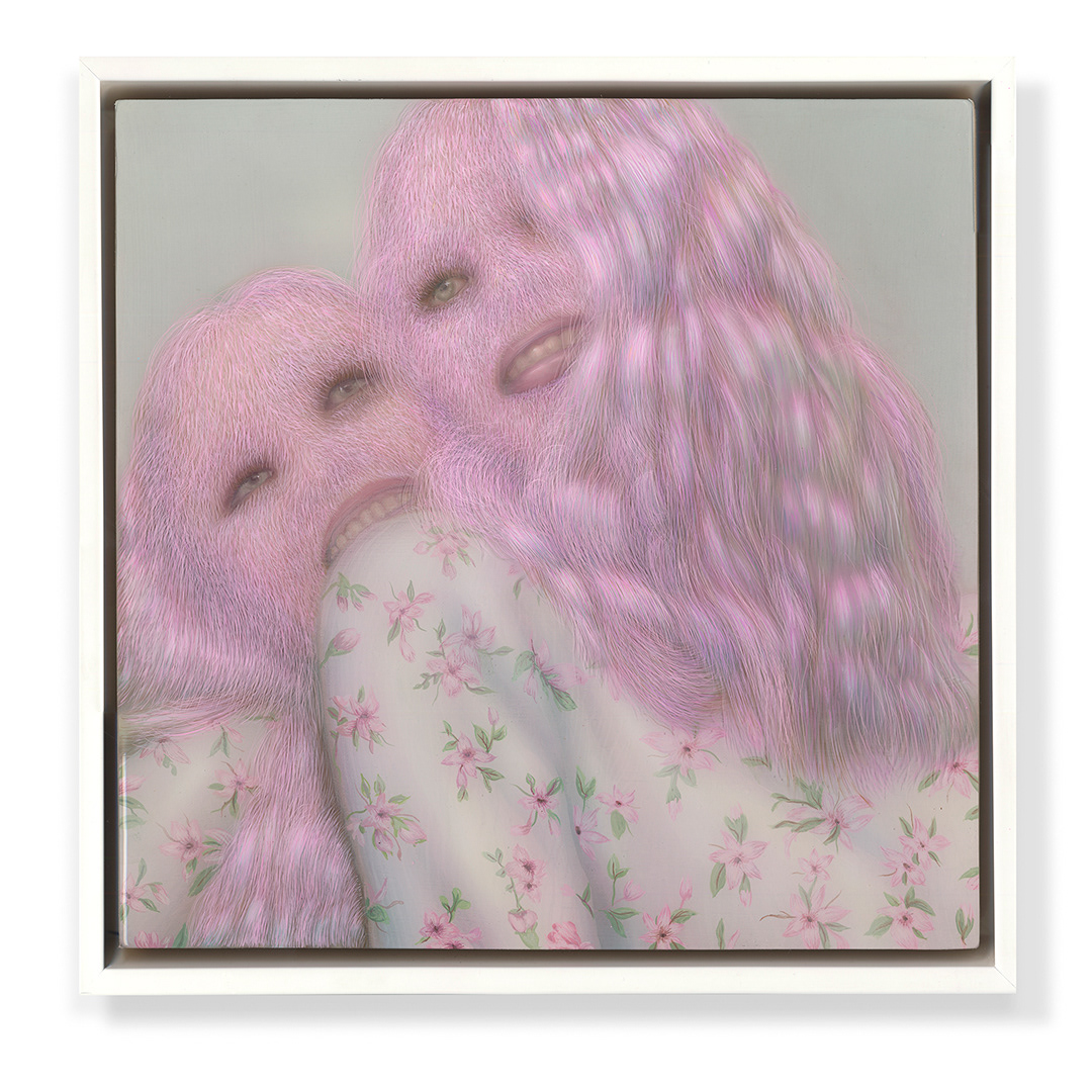 Girl with Floral Patterned Sweater, 12" X 12" X 2" inches, oil, acrylic, and epoxy resin on panel, 2020