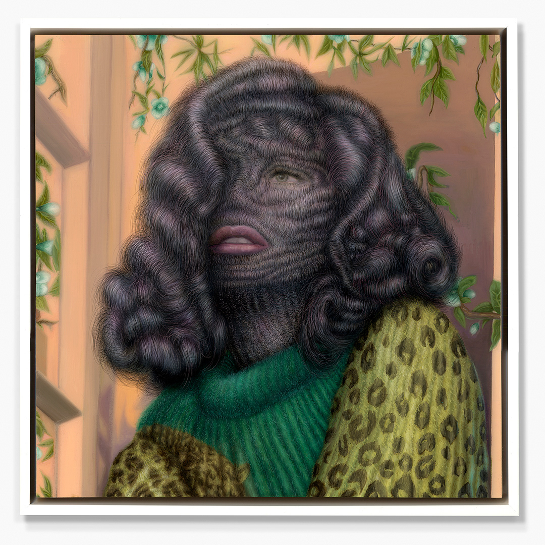 Girl with Leopard Print Sweater, 16" X 16" X 2" inches, oil, acrylic, and epoxy resin on panel, 2020